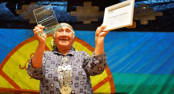 Guardiana de la cultura ancestral de su pueblo, María recibió el micrófono de la Decana de la FFyH, Flavia Dezzutto, y agradeció en su lengua madre: “Guarden en su corazón y en su mente lo que escuchan”, tradujo al castellano la abuela de 78 años ante el público que habitó el Auditorio Hugo Chávez para homenajearla y reconocer con la entrega del Premio José María Aricó un camino de lucha y rebeldía en defensa de sus tierras y sus modos de vida, acechadas y saqueadas desde la formación misma del Estado Argentino a fines del siglo XIX. “Un país que aún está enterrado en la zanja de Alsina, aquella zanja del genocidio indígena, porque el gran problema argentino, latinoamericano, siempre fue y sigue siendo la cuestión de la tierra, la propiedad de la tierra”, había dicho minutos antes Dezzutto, cuando explicó por qué la Facultad había decidido entregar la más importante distinción institucional a María y a través de su persona a “toda una comunidad que lucha, que construye y dialoga con la naturaleza, con sus animales, con todo lo que late y vive en el territorio”.