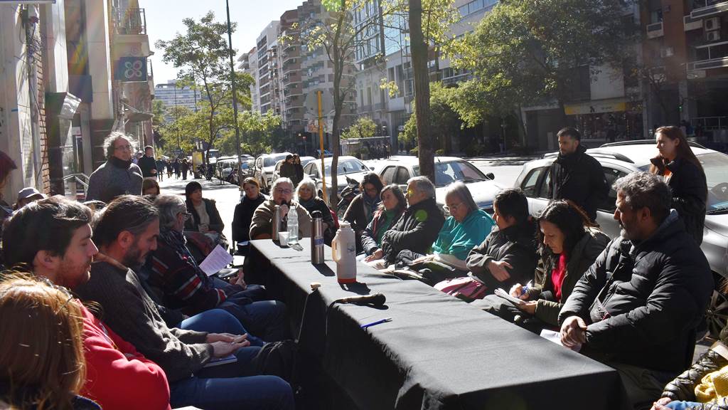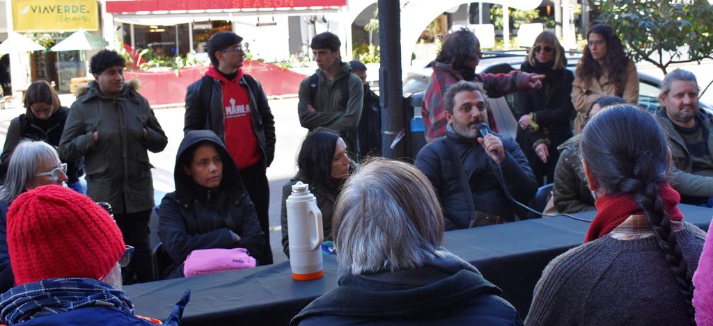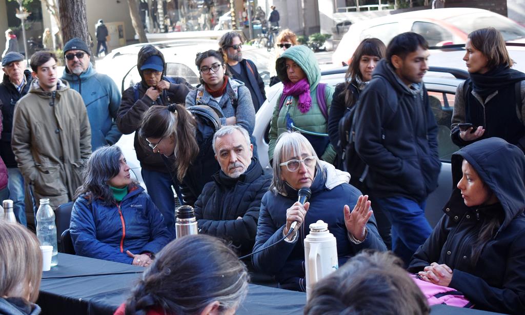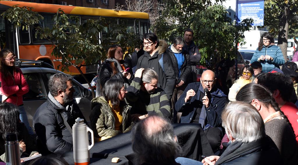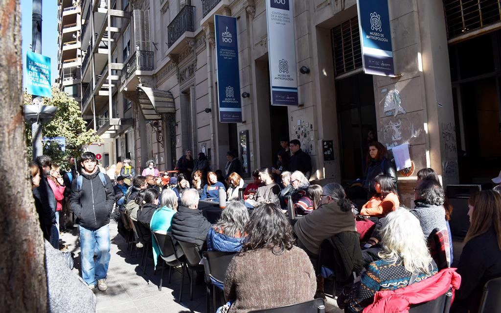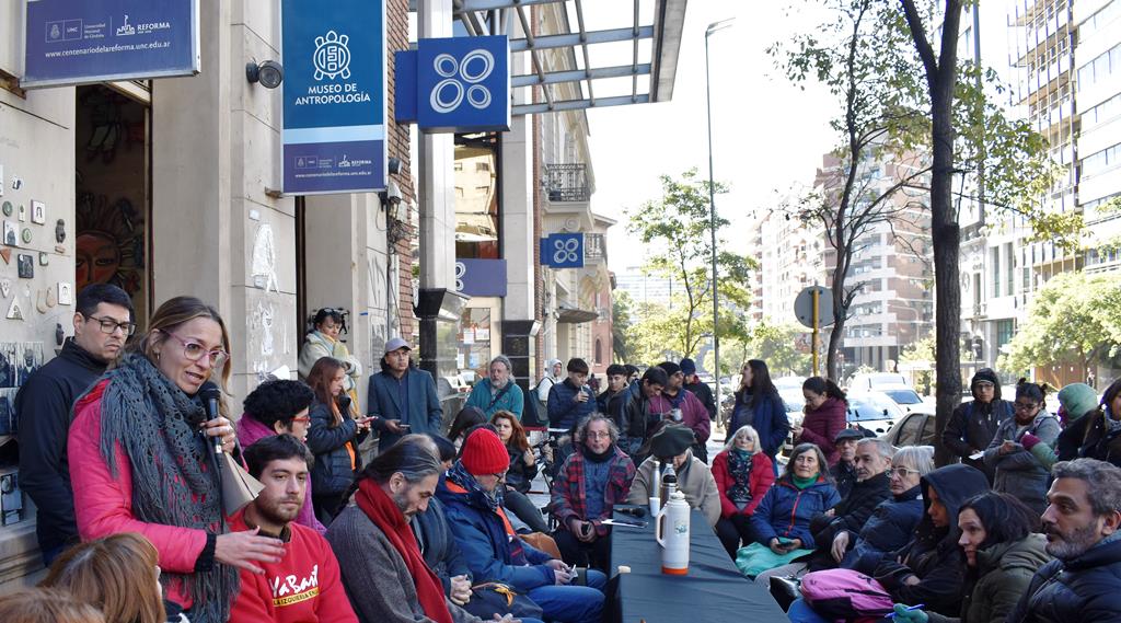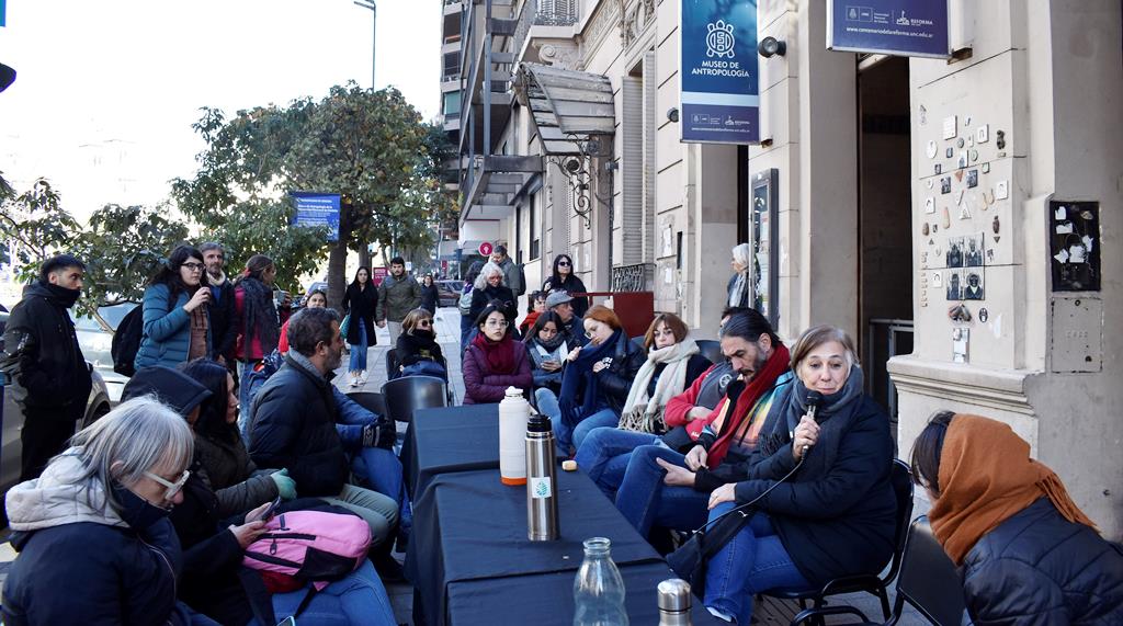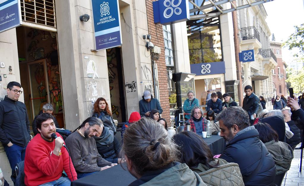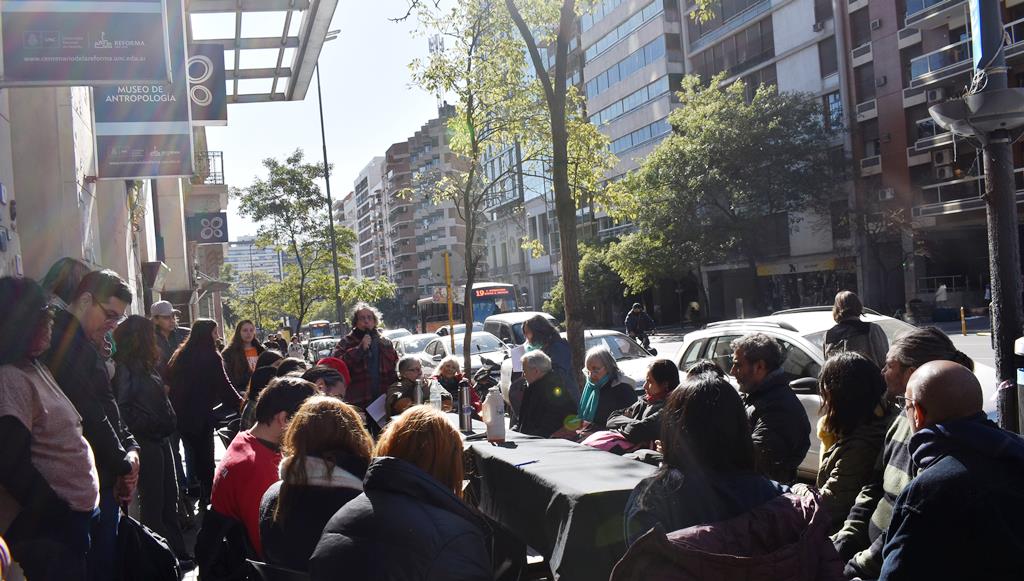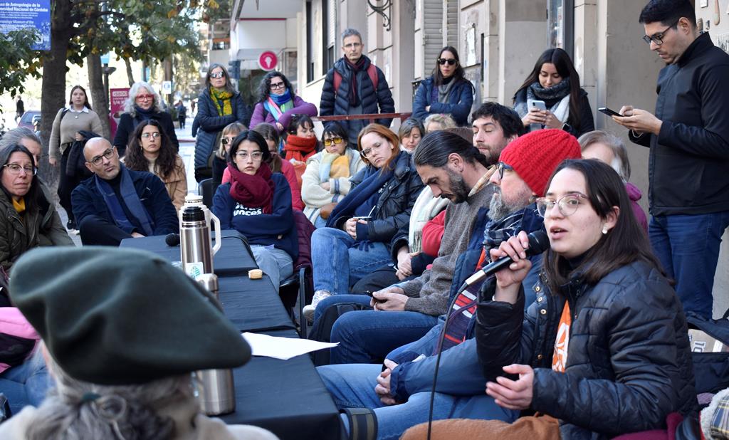 El aire helado de un invierno que arrancó con furia no impidió que el Consejo Directivo de la Facultad de Filosofía y Humanidades sesionara el lunes 23 de junio al aire libre, en la vereda del Museo de Antropologías, con el objetivo de compartir con la ciudadanía que circulaba por esa transitada zona de la ciudad la dramática situación presupuestaria que atraviesan todas las universidades públicas argentinas y sus organismos científicos y tecnológicos. Un sistema que está siendo dinamitado por el ajuste y la motosierra del gobierno nacional desde el minuto uno de la gestión de Javier Milei.
