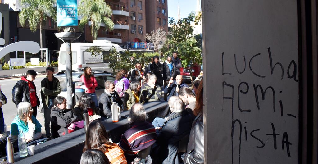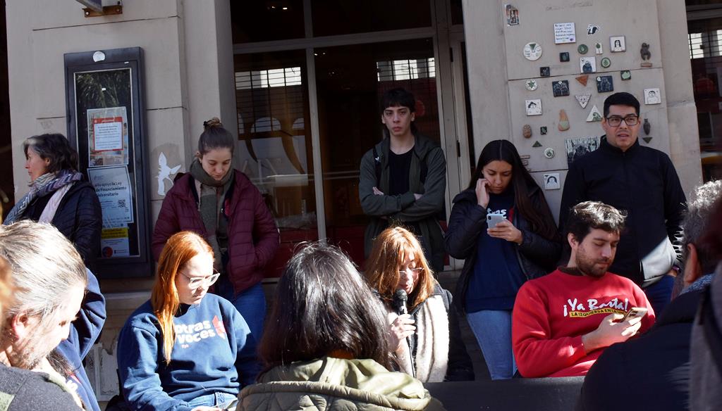 En una sesión al aire libre en la vereda del Museo de Antropologías, el Consejo Directivo de la FFyH convocó a movilizarse y participar de las acciones y medidas de fuerza definidas para que el Congreso Nacional trate un proyecto de ley que permita, entre otras urgencias, recomponer salarios arrasados por el ajuste de Milei. Con la participación de Adiuc, docentes del nivel medio y público que pidió la palabra, también se repudió el fallo de la Corte Suprema de la Nación contra Cristina Fernández de Kirchner y los efectos proscriptivos que genera en el sistema político.