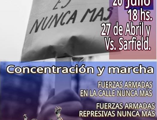 Las autoridades de la Facultad de Filosofía y Humanidades de la UNC adhieren al comunicado elaborado por la Mesa de Trabajo de Derechos Humanos de Córdoba que rechaza la decisión del Gobierno Nacional de modificar el rol de las Fuerzas Armadas en democracia asignándole tareas de seguridad interior, e invitan a la marcha organizada para el jueves 26 de julio, a las 18 hs, desde Vélez Sarfield y 27 de Abril, bajo la consigna “Fuerzas Armadas en la calle Nunca Más”.