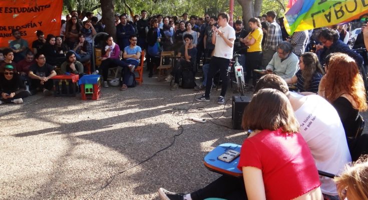 El jueves 16 de agosto se realizó una masiva asamblea interclaustros en la Facultad de Filosofía y Humanidades para rechazar los recortes en la educación que viene llevando a cabo el gobierno nacional, exigir más presupuesto y que lo salarios no queden detrás de la inflación. Se convocó a participar de una gran movilización el miércoles 22, a las 15 hs, desde el Portal de la Reforma hasta la Ex plaza Vélez Sarfield.
