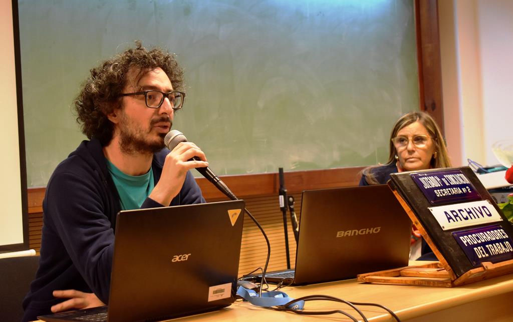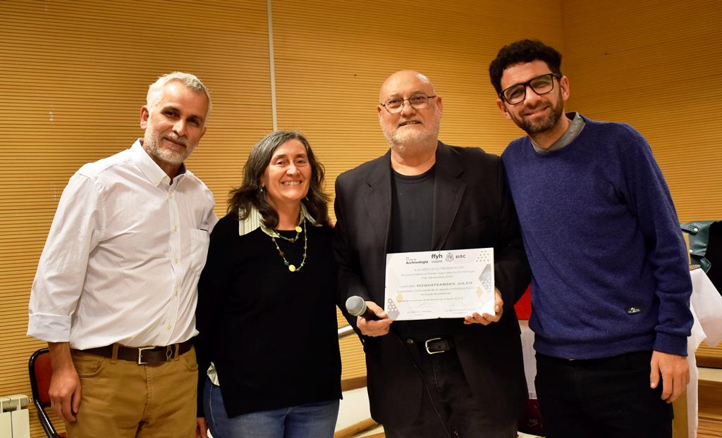 Las actividades continuaron con un reconocimiento institucional muy especial al primer Licenciado en Archivología de la Facultad de Filosofía y Humanidades, Julio Jorge Miquitiansky, quien realizó la defensa de su Trabajo Final de Licenciatura hace 20 años.