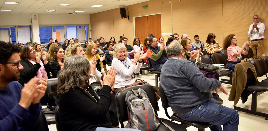 Miquitiansky recibió un diploma conmemorativo y aprovechó la ocasión para motivar a los y las estudiantes presentes a completar y concluir la carrera de grado, defender la universidad pública y cuidar la Escuela de Archivología.