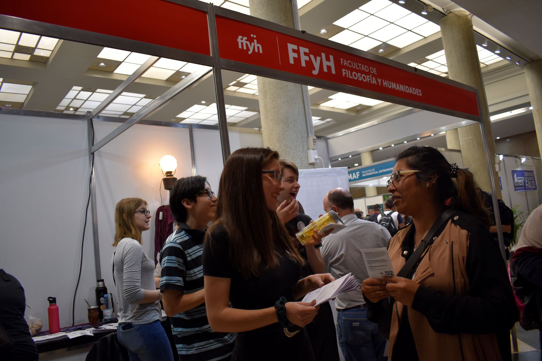 En ese marco, el stand de la Facultad de Filosofía y Humanidades recibió a miles de personas interesadas en su oferta académica. Allí participaron las integrantes de la Secretaría de Asuntos Estudiantiles, el Centro de Estudiantes y un centenar de voluntaries, estudiantes de las distintas carreras. En este espacio, se brindó información acerca de la oferta académica que ofrece nuestra Facultad, las fechas de inscripción y la modalidad de cursado, además de dar a conocer los distintos programas, becas y proyectos que acompañan las trayectorias académicas de les estudiantes. A su vez, la participación de voluntaries fue fundamental para el desarrollo de la muestra, quienes además de difundir información, compartieron diversas experiencias personales de su paso por la FFYH.
