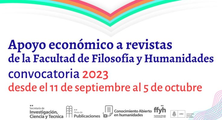 La Secretaría de Investigación, Ciencia y Técnica y el Área de Publicaciones y de la Facultad de Filosofía y Humanidades abren la Convocatoria de Apoyos Económicos a revistas producidas en la Facultad. La convocatoria estará abierta desde el lunes 11 de septiembre al jueves 5 de octubre, inclusive.