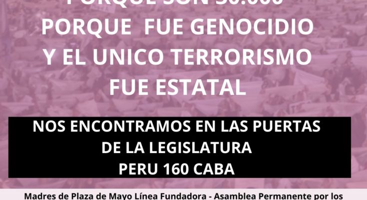 Por todo esto, exigimos se adopten todas las medidas necesarias para evitar que esa provocación se materialice, que no sólo niega y falsea la verdad histórica, sino que ofende la memoria colectiva. Demandamos a las autoridades y el pleno de ese cuerpo legislativo, como de todo el arco político, las organizaciones sociales, estudiantiles y sindicales, que efectivamente aspiran a consolidar el estado de Derecho y la Democracia, que tanto nos costó recuperar, se expresen en idéntico sentido.