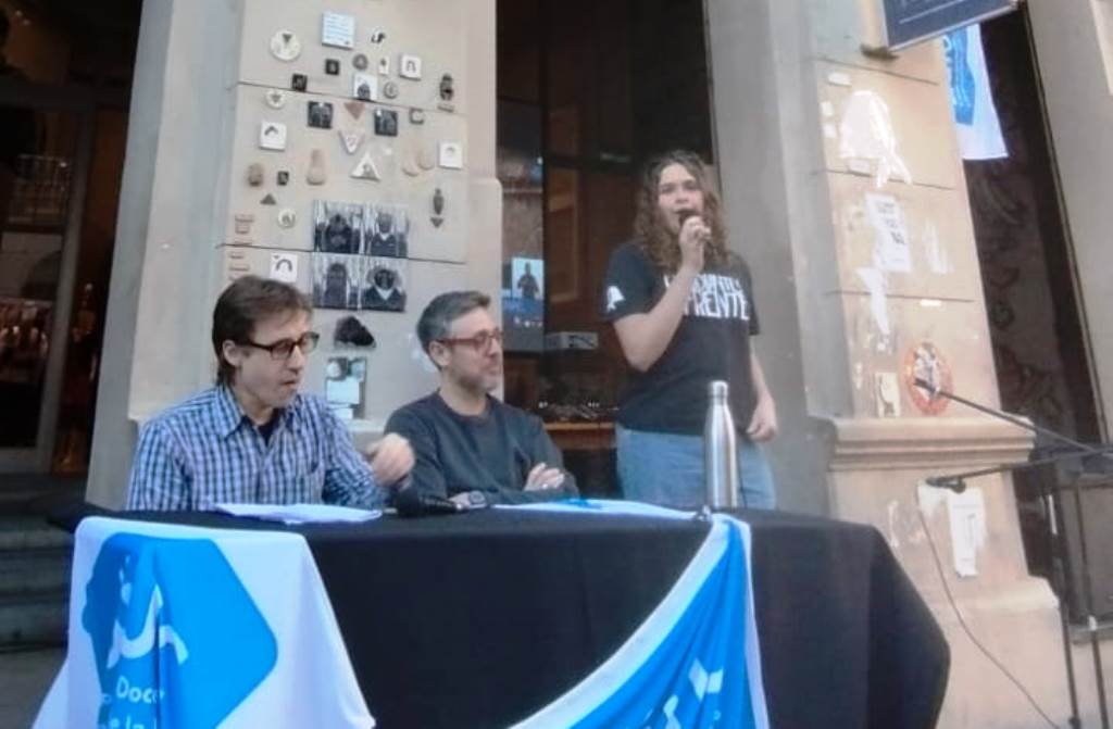 La situación de lxs docentes de nivel medio estuvo representada por Franco Boczkowski, secretario general de UEPC Capital, y por parte de los SRT, con el periodista Andrés Oliva. Las intervenciones cerraron con un diálogo con Carolina Vergara, docente del Departamento de Cine y Artes Audiovisuales de la FA, quien disertó sobre el INCAA y la producción del cine nacional.