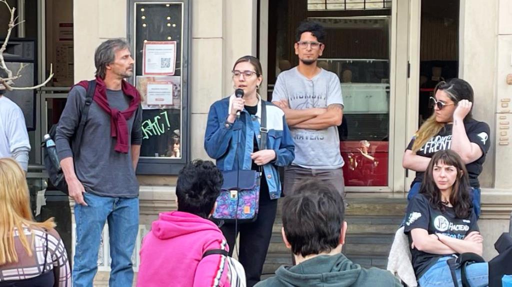 En la puerta del Museo de Antropologías, la comunidad universitaria convocada por la FFyH siguió con múltiples actividades el tratamiento de la Ley que en la madrugada del viernes 13 de septiembre fue aprobada por amplísima mayoría en el Senado de la Nación, en un contundente mensaje político al posible veto que anunció el Presidente Milei.
