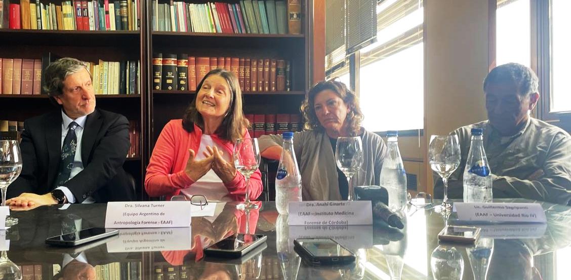 Luego fue Miguel Ceballos, secretario de Derechos Humanos, Trata y Género del Juzgado quien amplió lo que se viene realizando y destacó el acompañamiento de quienes compartían el anuncio: Silvana Turner, del Equipo Argentino de Antropología Forense, el geólogo Guillermo Sagripanti, de la Universidad Nacional de Río Cuarto y Anahí Ginarte, del Instituto de Medicina Forense, colaboradorxs del EAAF en esta primera campaña, que tiene una duración de 70 días.