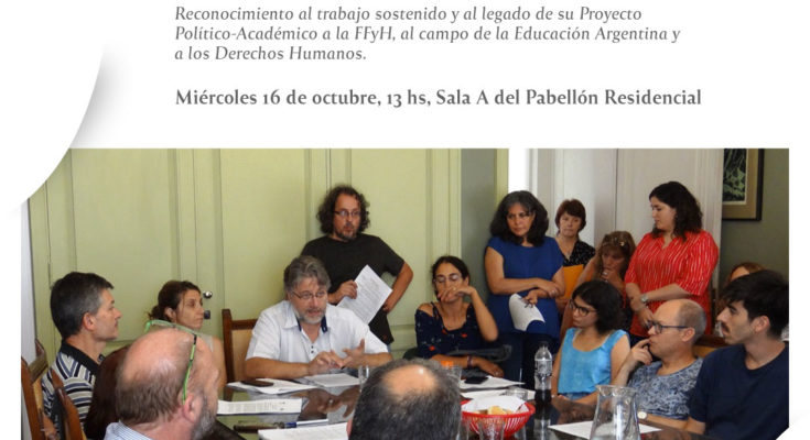 Este será un reconocimiento al trabajo sostenido y al legado de su Proyecto Político-Académico a la FFyH, al campo de la Educación Argentina y a los Derechos Humanos.