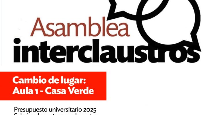 Después de la aprobación del veto presidencial a la ley de financiamiento universitario en la cámara de diputados, se convoca a una nueva asamblea interclaustros en la Facultad de Filosofía para el día martes 15 de octubre, a las 14 hs, en el Aula 1 de Casa Verde.