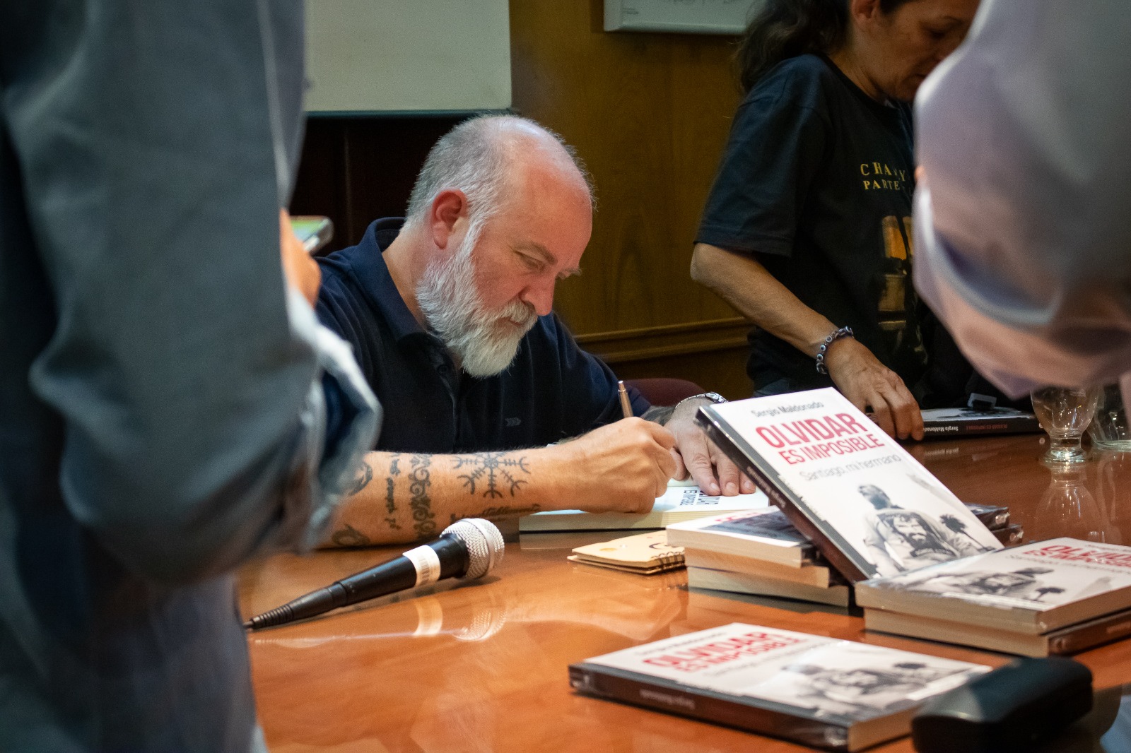 Sergio Maldonado presentó en la FFyH el libro “Olvidar es imposible”, que escribió sobre su hermano Santiago, en el cual reconstruye día por día lo ocurrido en la Patagonia desde el 1 de agosto de 2017, cuando se produce la represión de Gendarmería a la comunidad mapuche, hasta el 17 de octubre de ese año, cuando el cuerpo aparece misteriosamente “ahogado” en el río Chubut, luego de 78 días de estar desaparecido. Un testimonio conmovedor e imprescindible sobre un caso que sacudió y movilizó al país entero y que hasta el día de hoy busca respuestas para saber la verdad de lo que pasó.