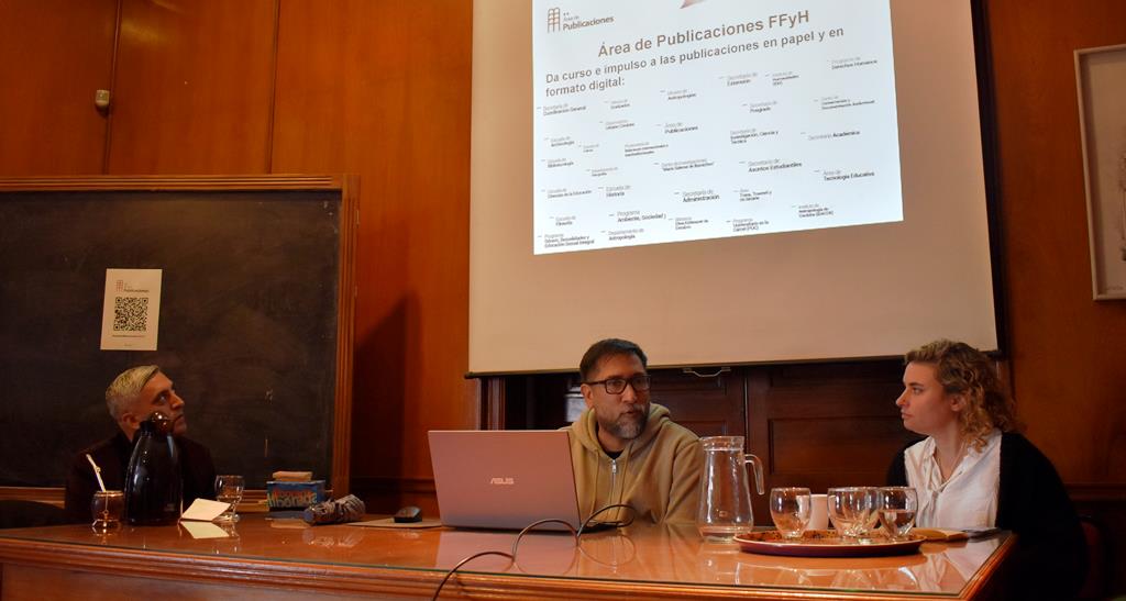 En este sentido, el Área de Publicaciones de la Facultad de Filosofía y Humanidades ya subió más de 170 producciones al Portal de Editoriales Libres de la UNC, que depende de la Oficina de Conocimiento Abierto. “Esta es una plataforma institucional que reúne y da soporte a las editoriales académicas de las distintas Facultades y unidades de la UNC, promoviendo la edición, gestión y difusión de libros científicos, académicos y culturales en formato digital”, explica Juan Pablo Gorostiaga, coordinador del Área de Publicaciones, quien llevó adelante el proyecto junto con el equipo de trabajo nodocente del Área: Jeremías Corazza, Paloma Braverman, María Bella y Luis Sánchez Zárate.