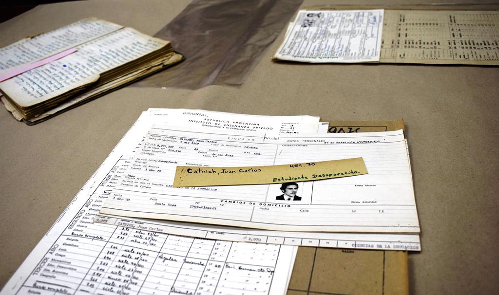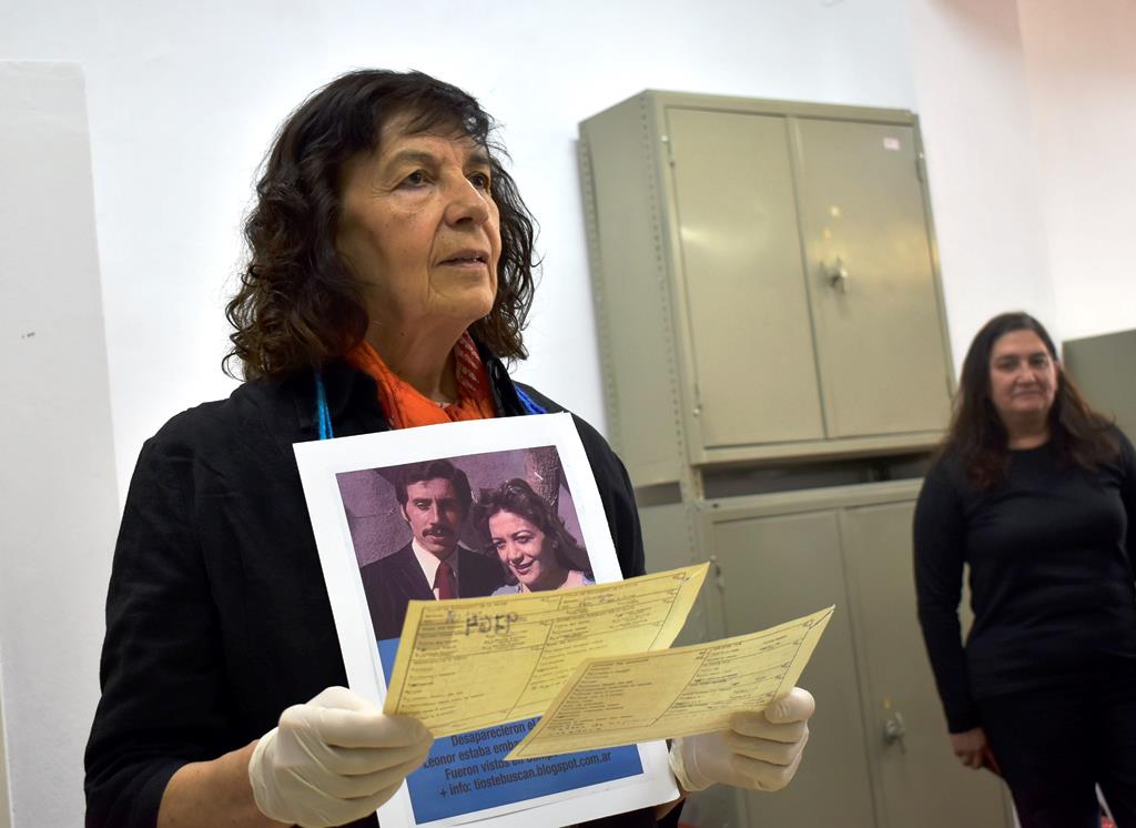 María Ester se acerca y recorre con la mirada emocionada el analítico del secundario de su hermana Leonor, la ficha de ingreso a la carrera de Ciencias de la Educación de la FFyH, se sorprende con las fotos de “Nony” y de Juan Carlos, “Caniche”, jovencísimos, llenos de sueños y futuro a sus 18 y 20 años. Consciente del impacto, Tito Villanueva, trabajador del Archivo de la Facultad, se acerca y le entrega unos guantes para que María pueda tocar, sentir, los papeles y documentos que son el registro de una parte de la vida arrebatada a su hermana y su cuñado por el Terror de Estado, el proyecto criminal que en marzo de 1976 asaltó el poder para secuestrar, torturar, asesinar y desaparecer a miles de personas por su militancia o ideas políticas.