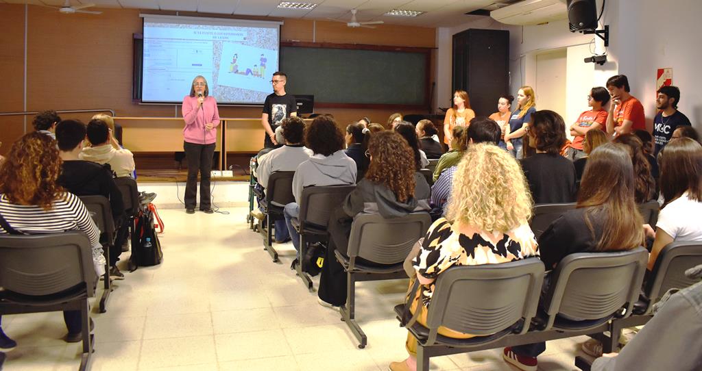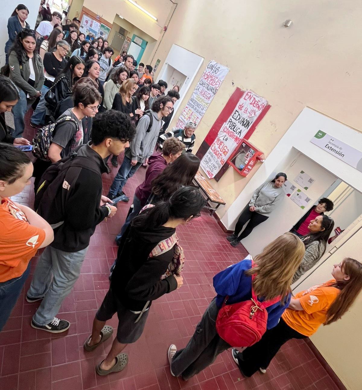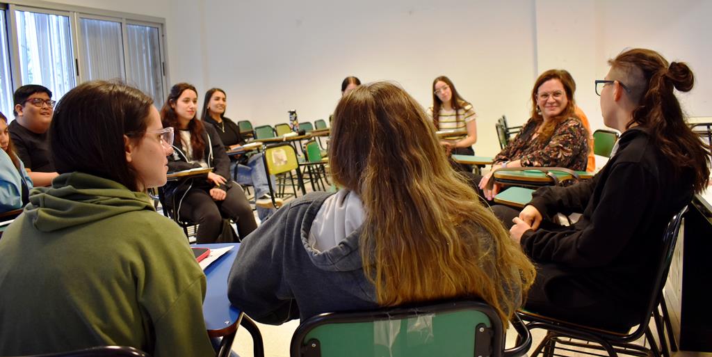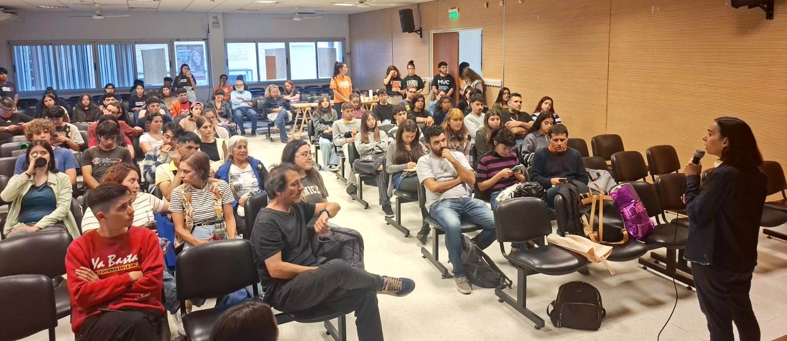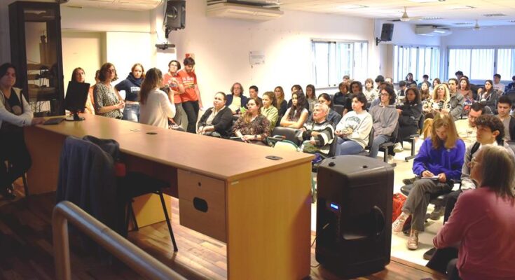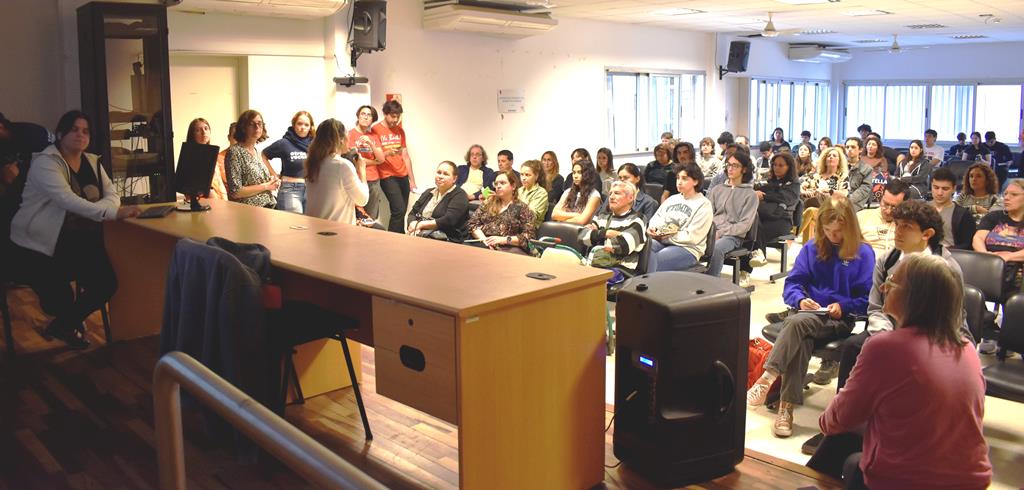 Posteriormente, se recorrieron los Pabellones de la Facultad en Ciudad Universitaria, donde directorxs de Escuelas y representantes nodocentes del Área de Servicios Generales, dialogaron con lxs futurxs estudiantes de la FFyH. También, la Secretaria de Extensión, Liliana Pereyra expuso sobre “¿Qué es eso de la Extensión?” con lxs presentes.