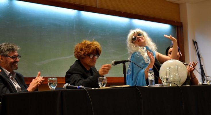 «Es importante destacar que Carlos ha sido panelista del programa de pensamiento político 648 entre los años 2011/ 2015. Podríamos continuar nombrando una vasta cantidad de libros, sin embargo no lo haremos porque Sushik nunca escribió ni una lista para el almacén”, dijo la Decana, para abrir una ronda de interpretaciones que con ingenio y humor arrancaron carcajadas y aplausos de un público que agradeció sentidamente la puesta en escena y el compromiso de quienes le pusieron el cuerpo a la organización de la misma y a todo el festejo nodocente, que cerró con la entrega de diferentes premios que fueron sorteados entre lxs trabajadorxs del claustro.