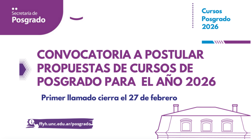 La Secretaría de Posgrado FFyH, UNC convoca a postular propuestas de cursos de posgrado para todo el año 2026.