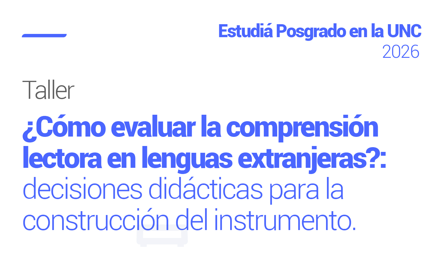 Taller dirigido a docentes de la FFyH, con conocimiento de lengua extranjera (inglés, portugués, italiano, francés y/o alemán), que estén interesadxs en administrar las pruebas de lectocomprensión en lengua extranjera en las carreras de doctorado y maestrías como carga anexa (Art. 3°, RHCD 288/2019)