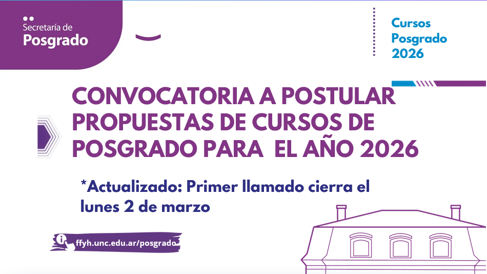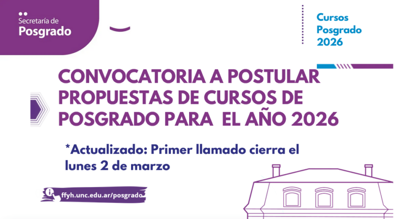 La Secretaría de Posgrado FFyH, UNC convoca a postular propuestas de cursos de posgrado para todo el año 2026.