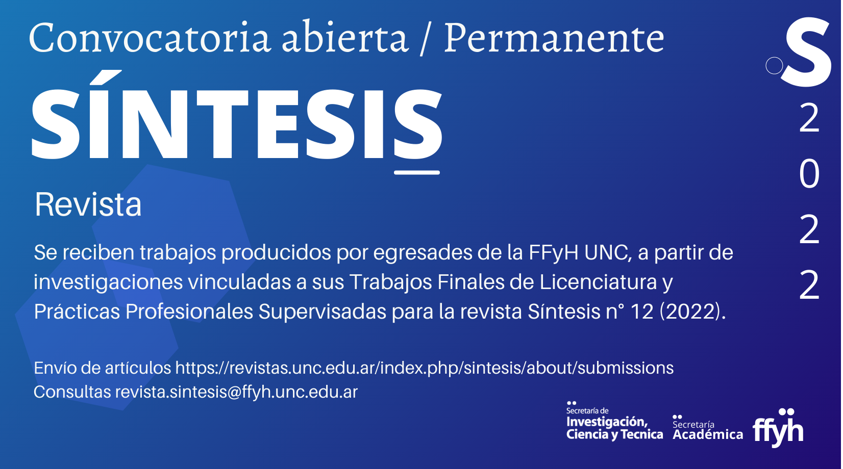Convocatoria abierta / Presentación de artículos / Revista Síntesis n° 12 (2022)