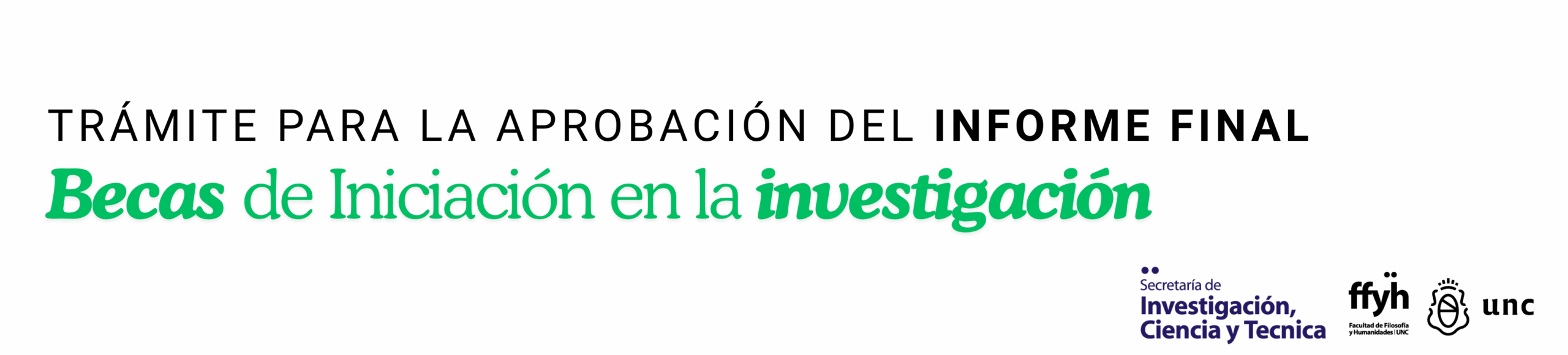 El informe final de Beca de Iniciación a la Investigación debe presentarse a través de expediente virtual, gestionado por la Mesa de Entradas Digital de la Facultad de Filosofía y Humanidades. Para ello, existe un formulario creado por Mesa de Entradas para facilitar la tarea. Ingresa a Trámite – Informe Final de Beca de Iniciación en la Investigación y adjunta la documentación correspondiente (unificar documentación en un solo archivo), según se trate de Beca para estudiantes o Beca para egresades.
