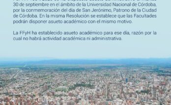 Se comunica a la comunidad de la FFyH que por RR 1884/2025 se ha dispuesto asueto administrativo el martes 30 de septiembre en el ámbito de la Universidad Nacional de …