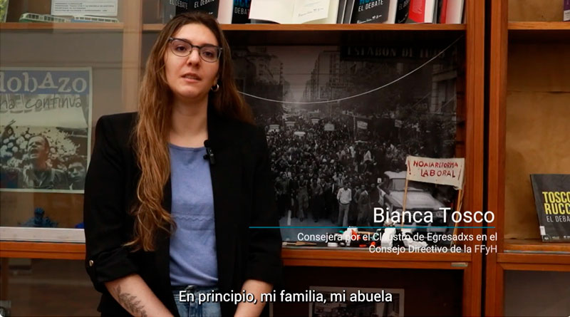 Leer másBianca Tosco, nieta de Agustín y consejera por el claustro de egresadxs del Consejo Directivo de la FFyH, cuenta quién
